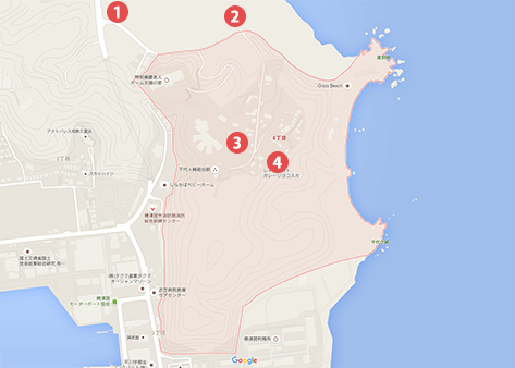 浦賀駅より京急バス(久19)で燈明堂入口下車。徒歩10分